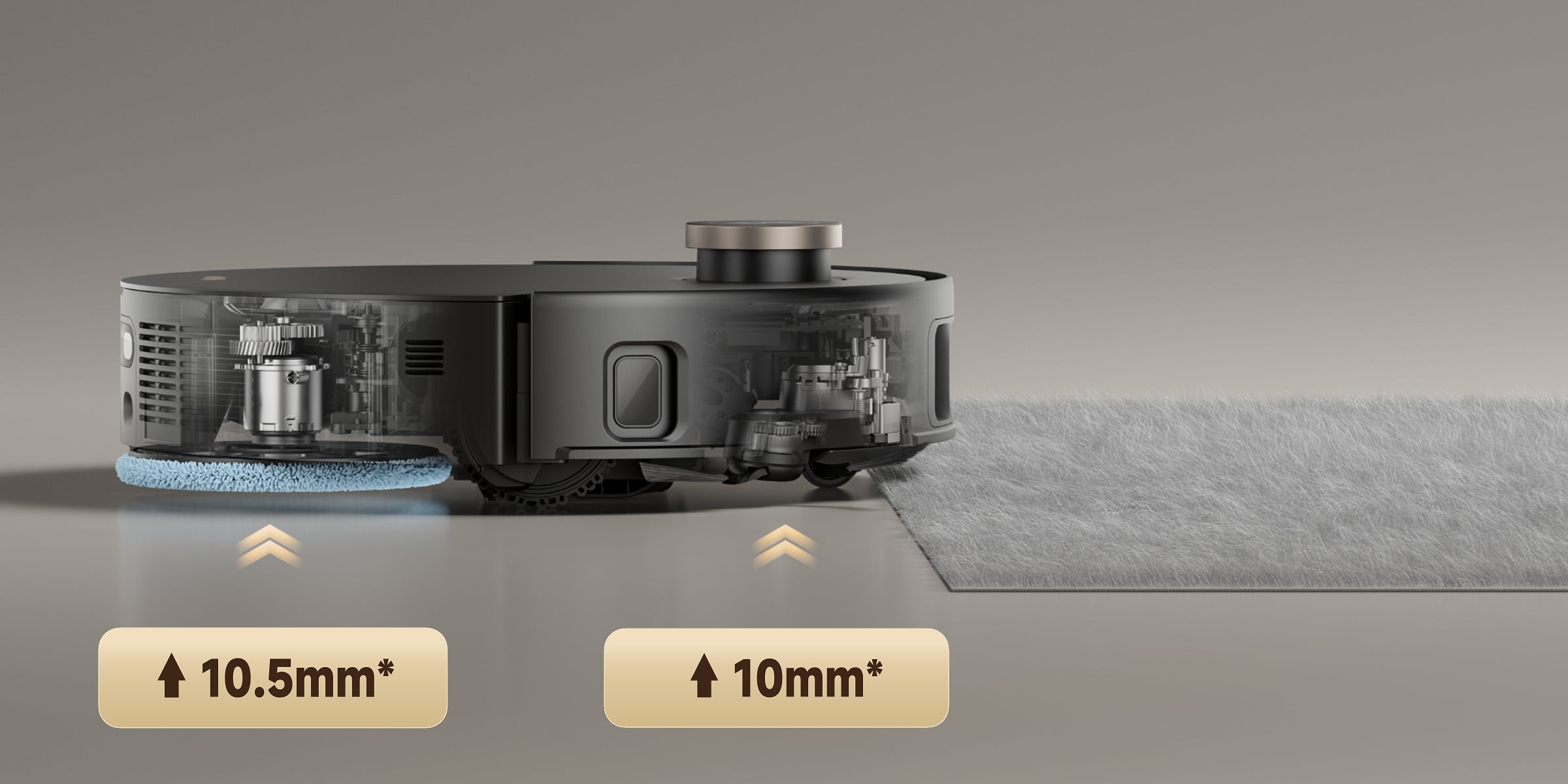 *10 mm, 10,5 mm: Dahili laboratuvar verilerimize dayanmaktadır. Kaldırma yüksekliği, yan fırça kaldırıldığında paspasların veya fırçanın kıllarının üst kısmıyla zemin arasındaki mesafe olarak tanımlanır.