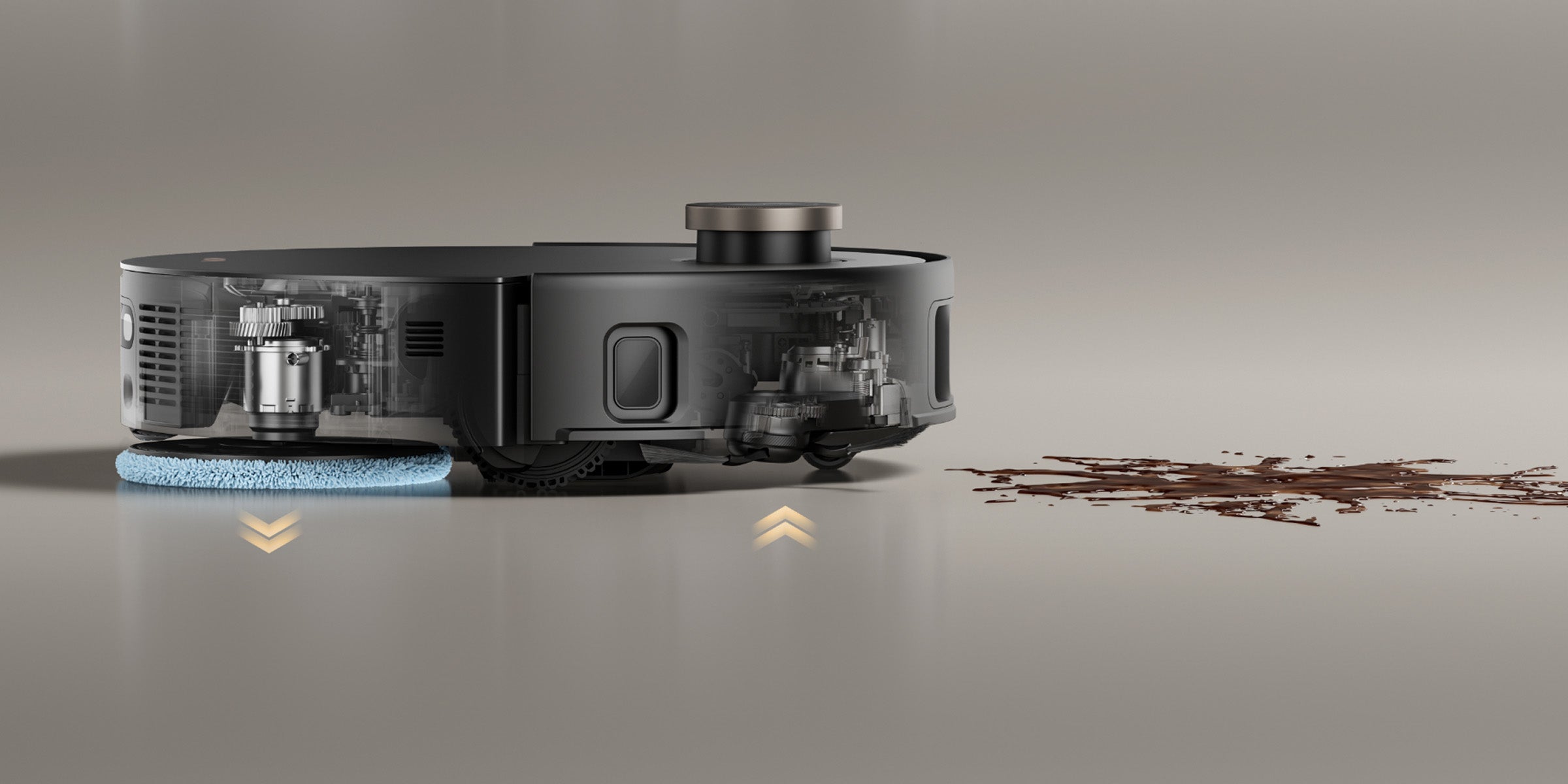 MOBIUS 60, kullanılmadığı zamanlarda paspasları veya yan fırçayı kaldırıp süpürme ve temizleme işlemlerini akıllıca ayırır ve tamamen otomatik temizleme sunar.